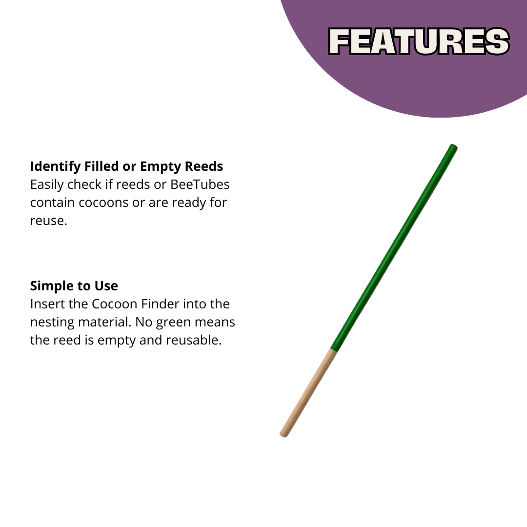 Take the guesswork out of cocoon harvesting! The Cocoon Finder is the ideal tool to quickly identify which reeds are filled with cocoons and which are empty and ready for reuse.
