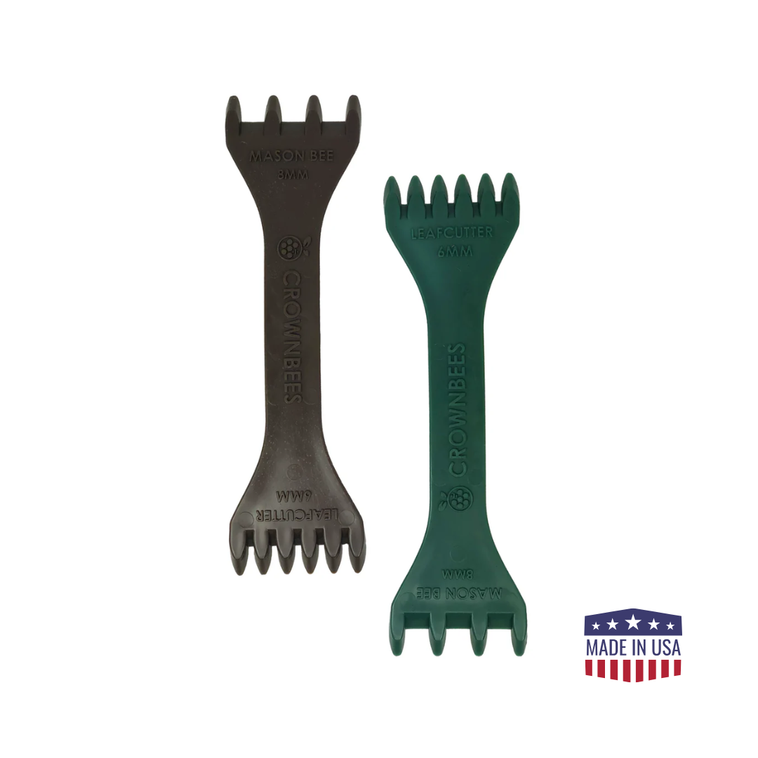 Save time and effort during your next cocoon harvest with our eco-friendly Cocoon Comb, specially designed for gently and efficiently harvesting cocoons from Crown Bees’ reusable wood trays and natural reeds.