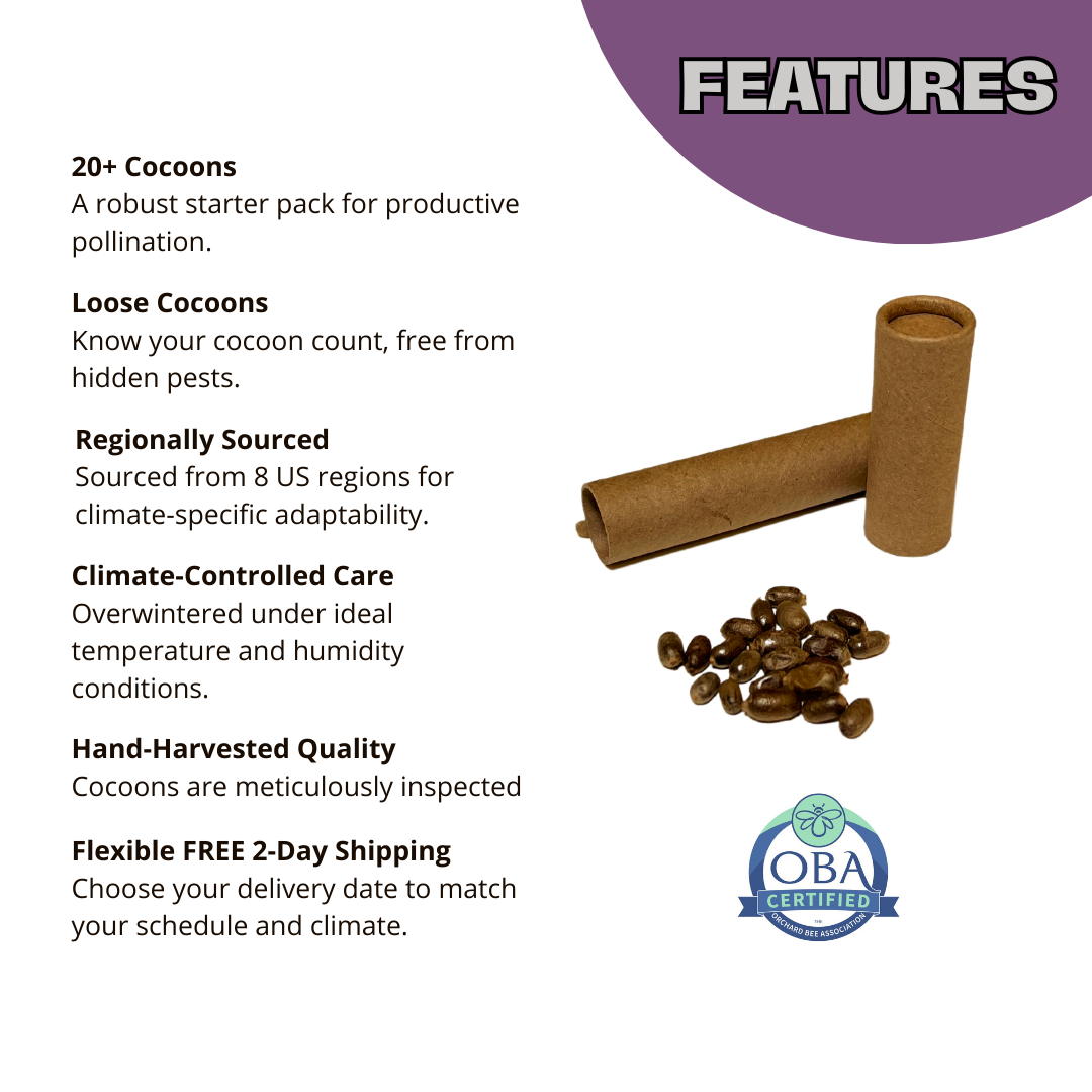 - Quantity: 20 Mason bee cocoons